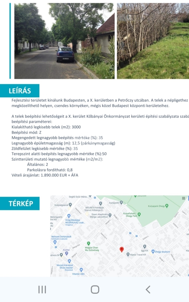 Eladó Fejlesztési terület Budapest X. kerület - Petrőczy utca
