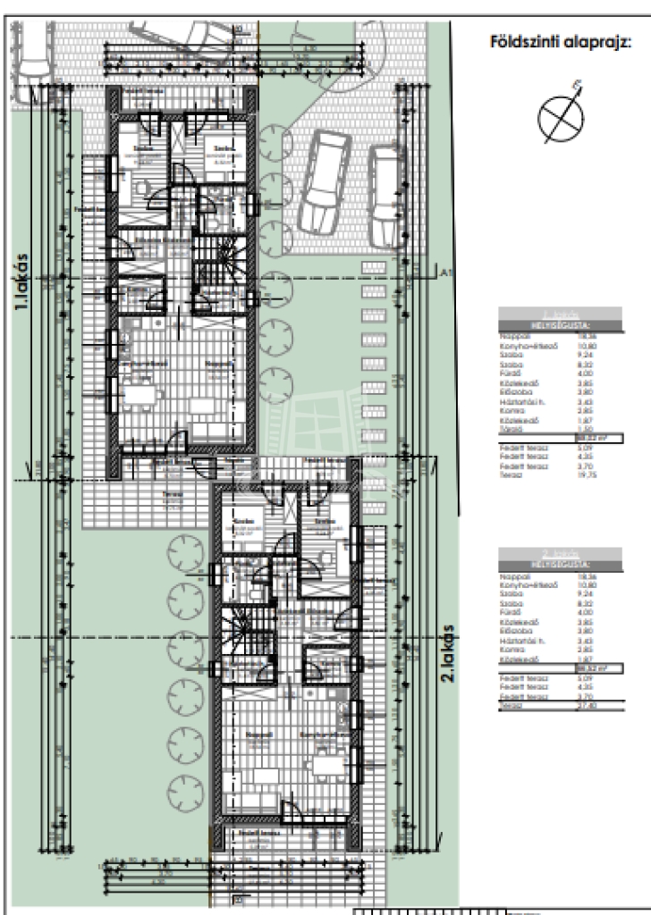 A lakásokhoz gépkocsi beálló és 500 m2-es kertrész tartozik.