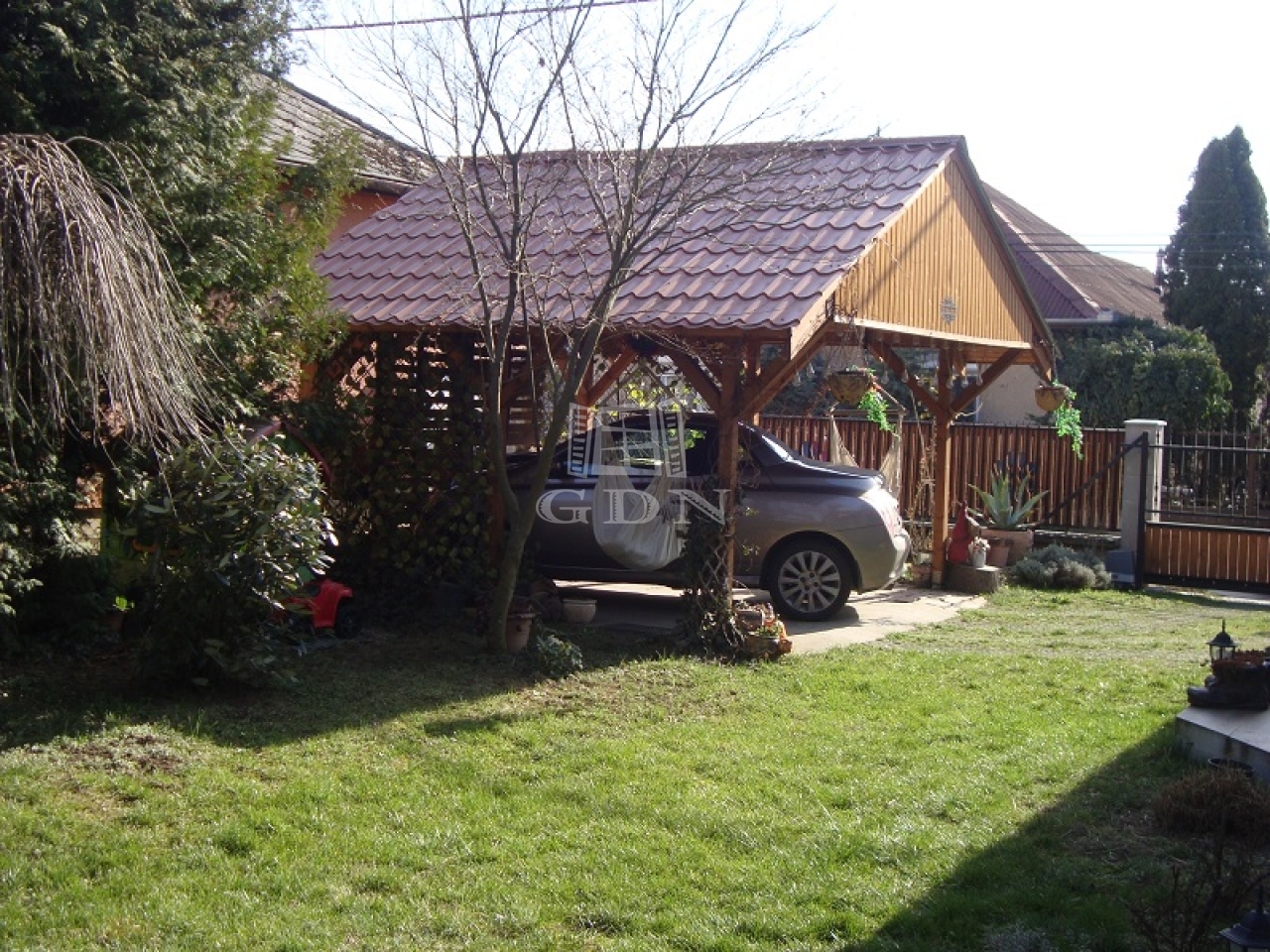 Itt kocsibeálló és egy rendezett kert található.