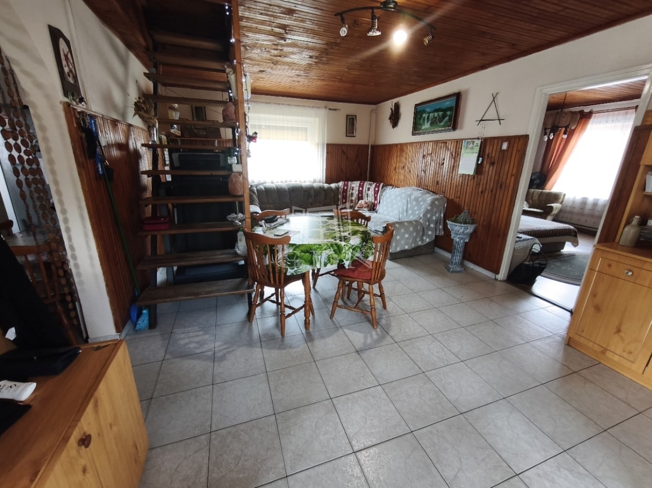A fő épület 100 nm és szoba, konyha, nappali, fürdőszoba, kamra és előtérből áll. Másik épületben szintén szoba, konyha, fürdőszoba és 2 garázs található.