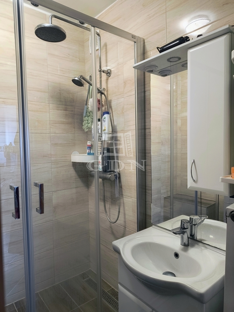 Fürdőszoba modern, épített zuhanyzóval
