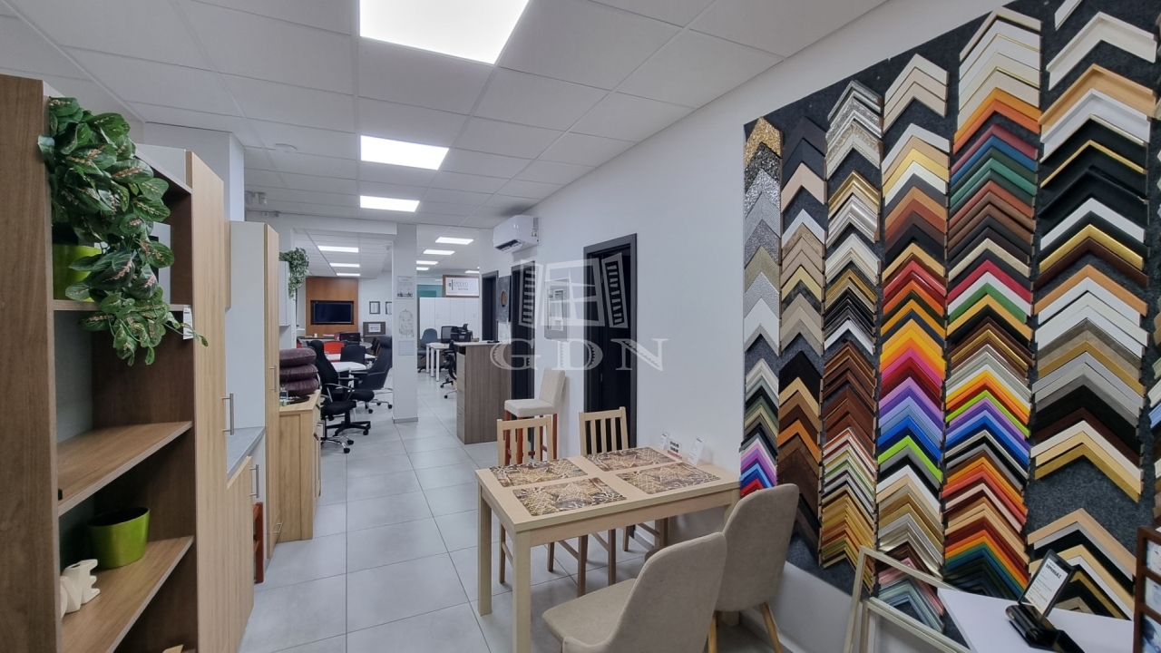 Az üzlethelyiség jelenleg két részre, egy 138m2 és egy 162m2 alapterületű egységre van bontva. Igény esetén összenyitva, egyben vagy megosztva, a jelenlegi állapotában is bérbe vehető.