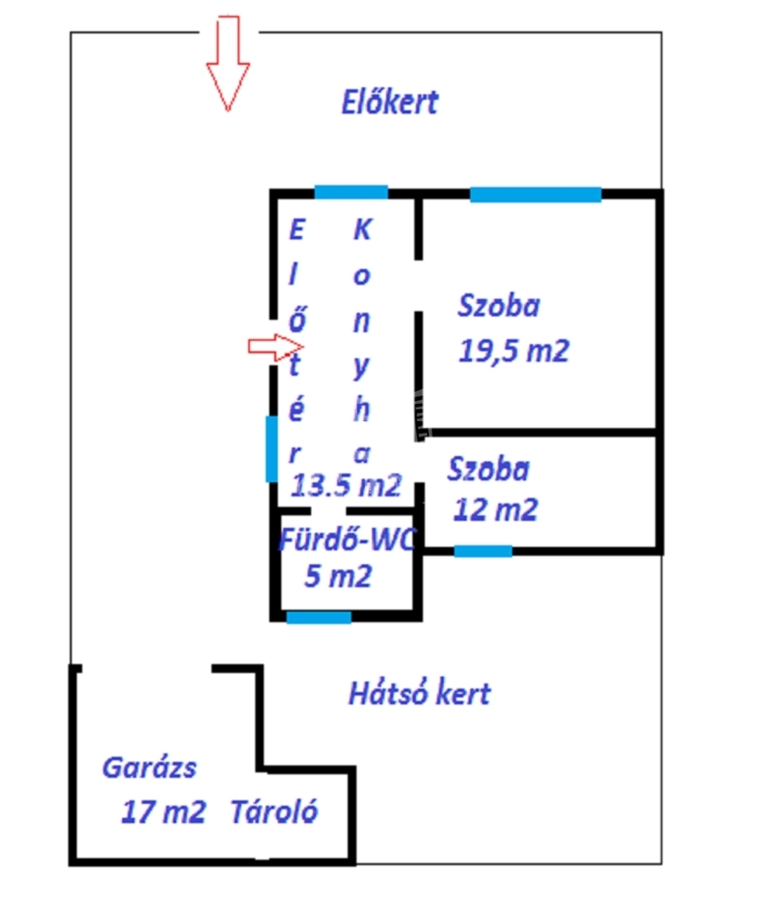 A házhoz tartozik egy 17 m2 garázs+tároló.