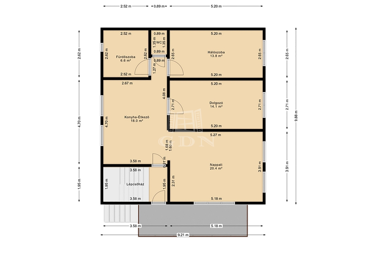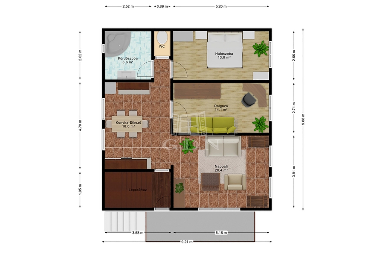 Tetőtéri lakás (61 m² + 7,8 m² erkély)