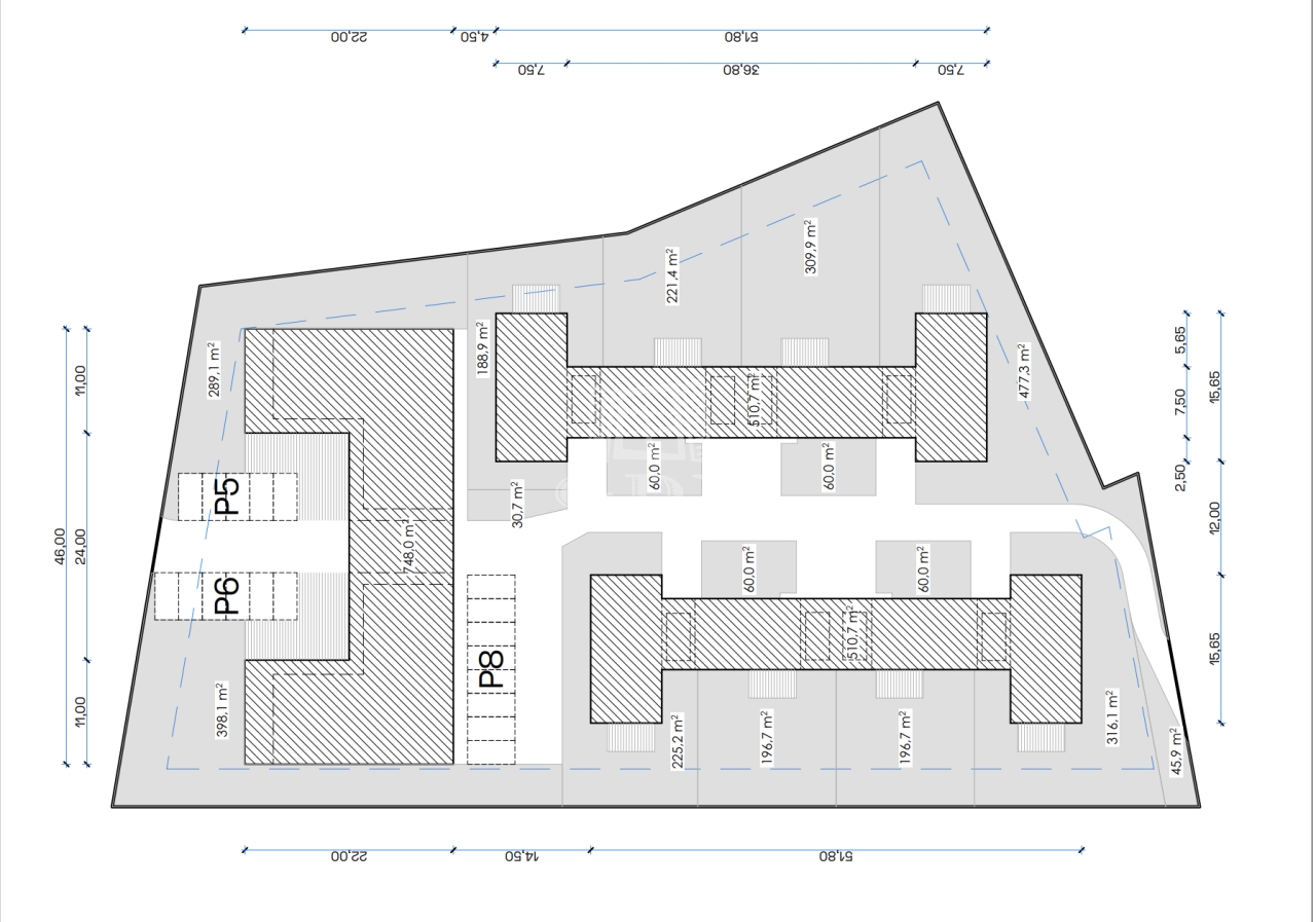 -Több lakás kialakítására alkalmas elrendezés,